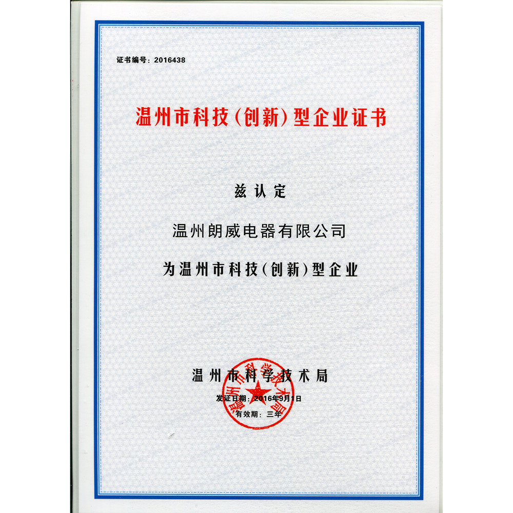 朗威電器被評選為《浙江省科技型中小企業》《溫州市科技(創新)型企業證書》《甌海區專利示范企業》等榮譽稱號,此榮譽肯定了朗威的創新和創造能力,朗威未來會在創新和創造的道路上繼續前行。